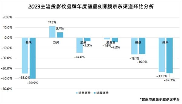反馈到具体品牌,除了当贝似乎没受太大影响外,其他主流投影仪品牌像坚果、爱普生、明基还有峰米这些,有一个算一个,它们的日子同样不好过。。。