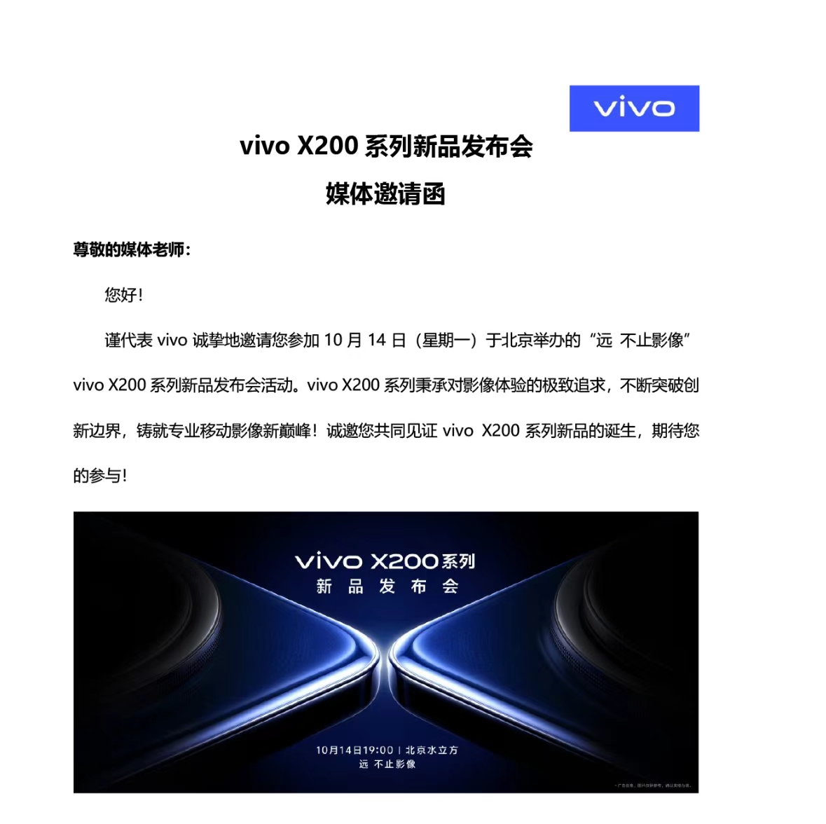 vivo应该是目前唯一确定新机发布时间的厂商,雷科技已收到了vivo X200系列的邀请函,该产品均将于10月14日发布。不过在高通骁龙峰会之前发布,意味着vivo X200系列首批不会有骁龙芯片的版本,而是全系搭载天玑9400。