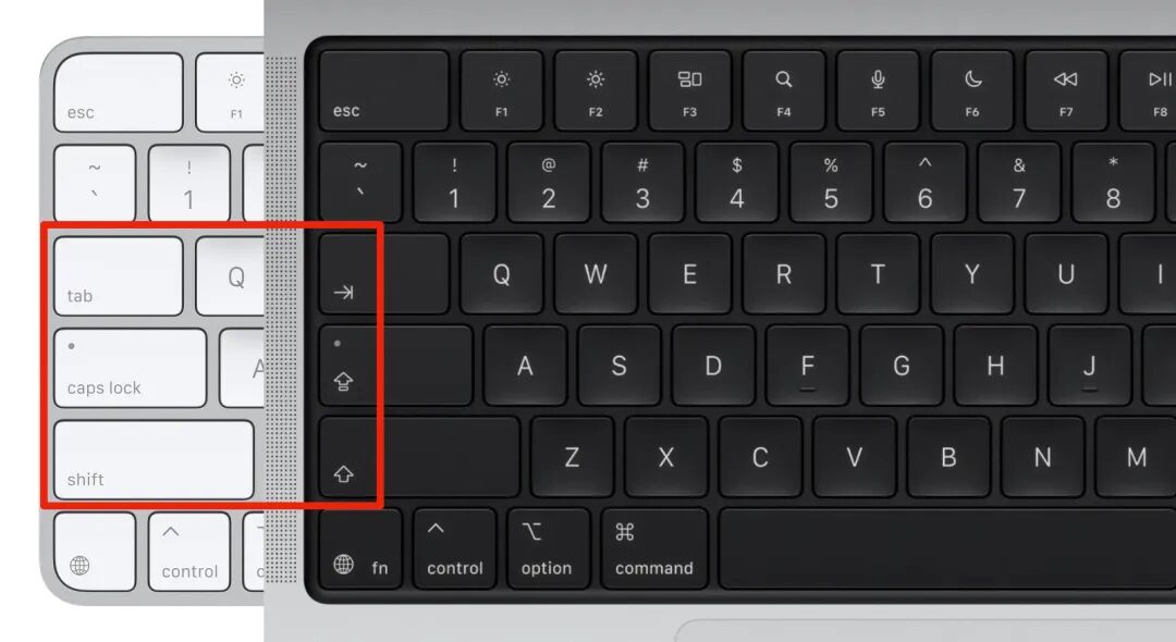 在今年 MacBook 的「美式英语」键盘上,苹果将之前的 tab、caps lock、shift 和 enter 全都换成了纯符号: