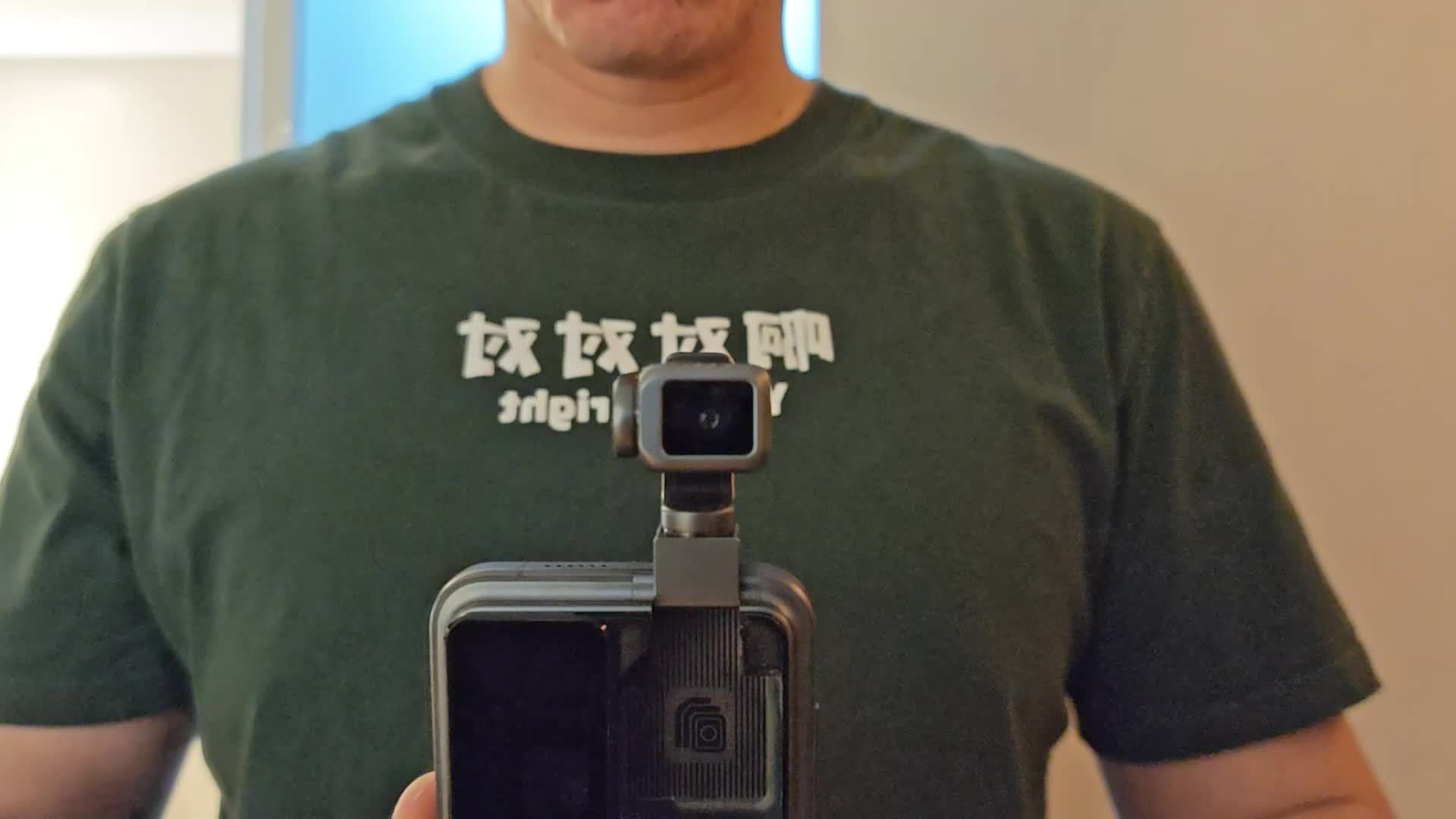 视频画面显示,该机在相机 App 左滑可进入云台模式,随后可激活那颗硕大电动翻转镜头,支持拍照、录像功能。视频中,@Aaron是个理工男 拍摄了一段在走廊里的旋转运镜视频,画面整体较为平稳、流畅。