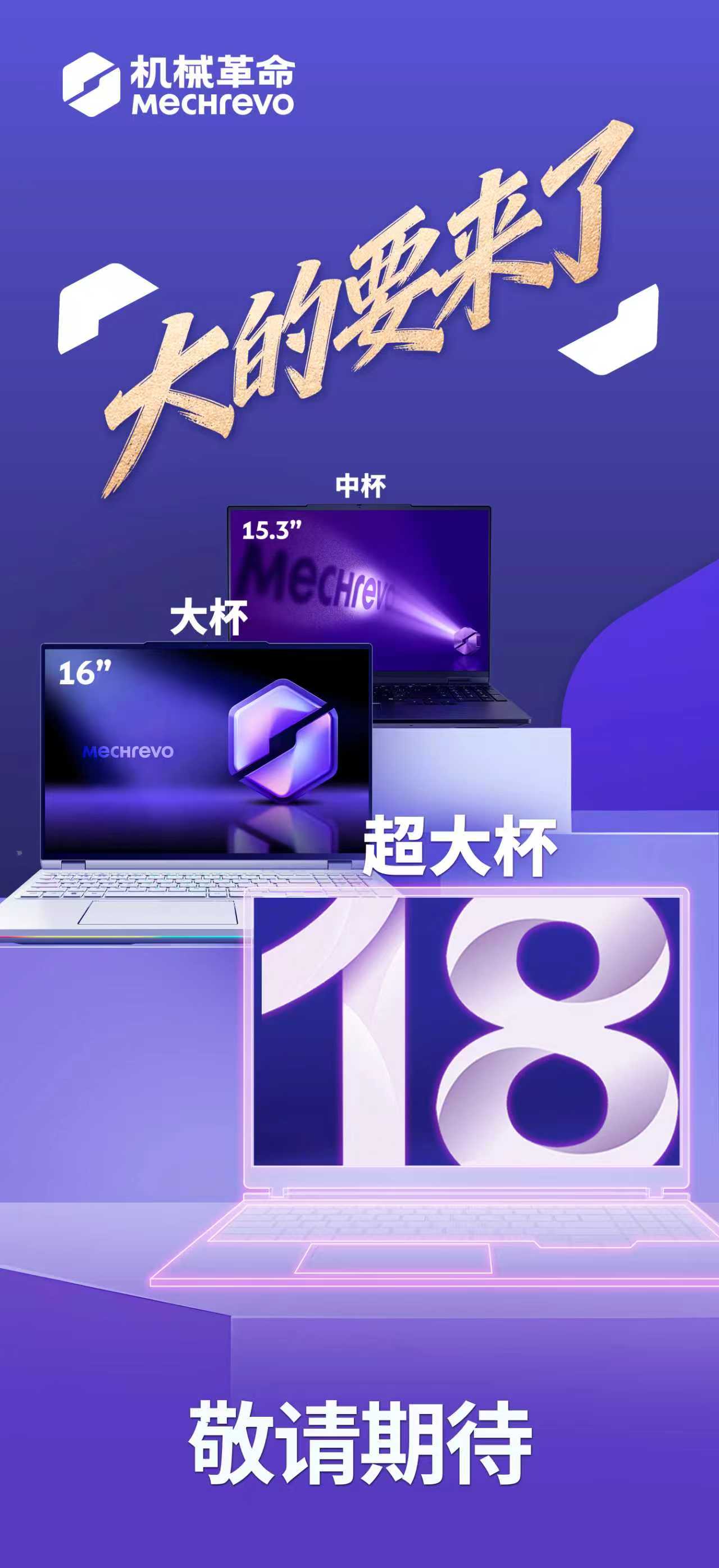 IT之家 3 月 6 日消息,机械革命 Mechrevo 社交媒体账号昨日预告将推出 18 英寸“超大杯”笔记本电脑,带来更广阔的视野和更沉浸的体验。
