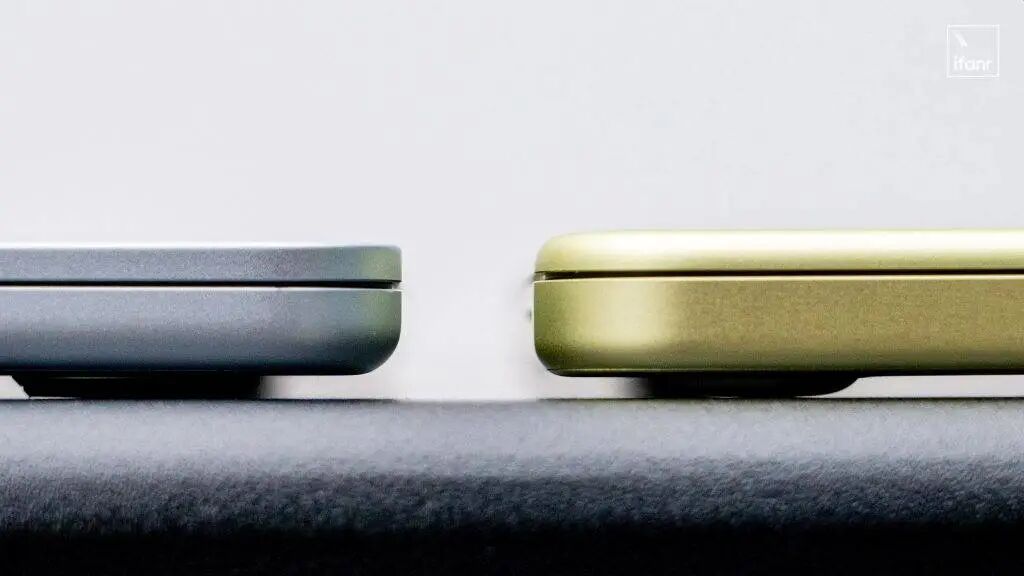 MacBook Neo 的 A 面边缘做了圆润的过渡,机身的一体性会更强,也更有可爱的感觉。作为对比,MacBook Air 的 A 面边缘采用了直角设计。