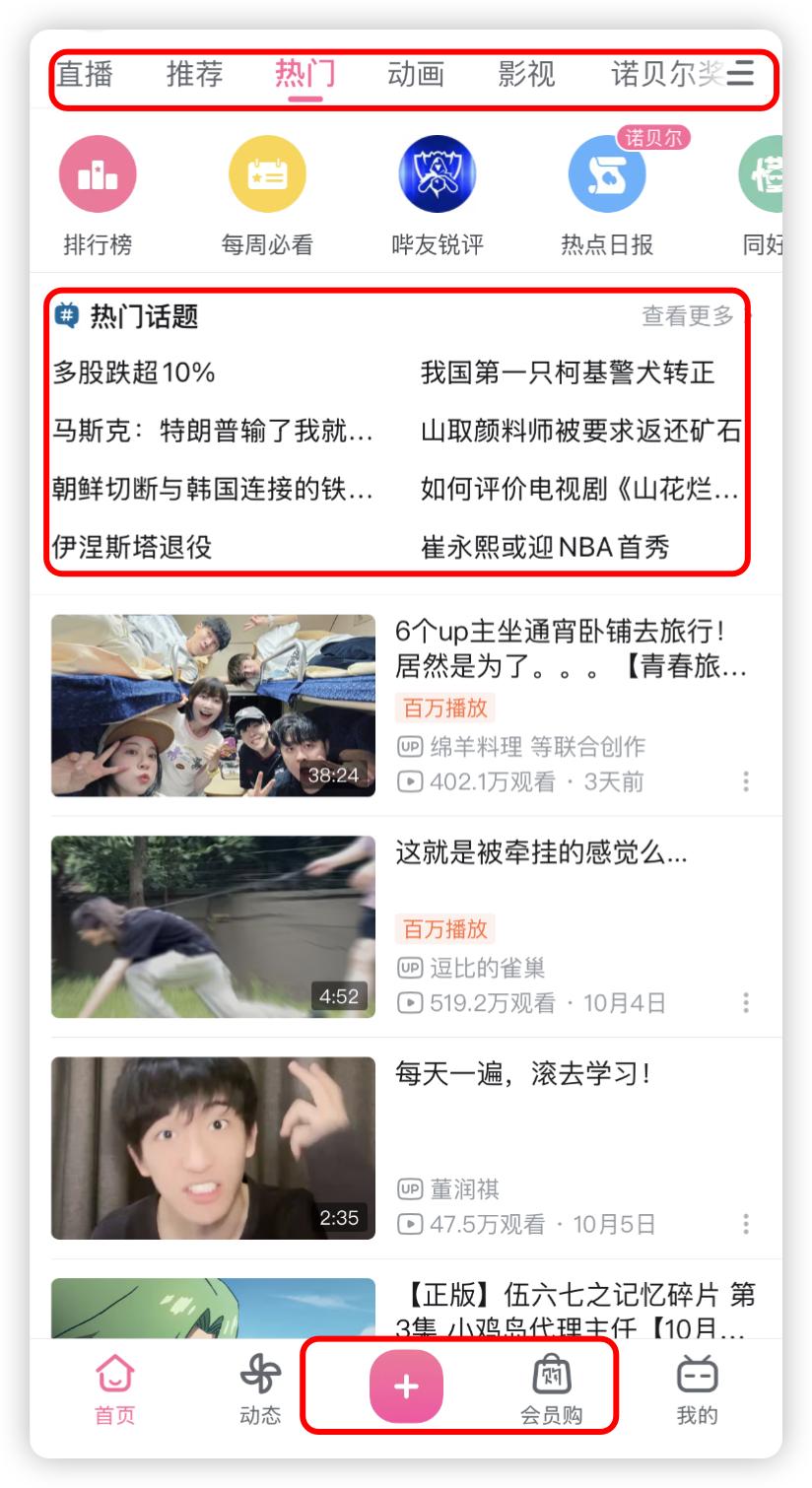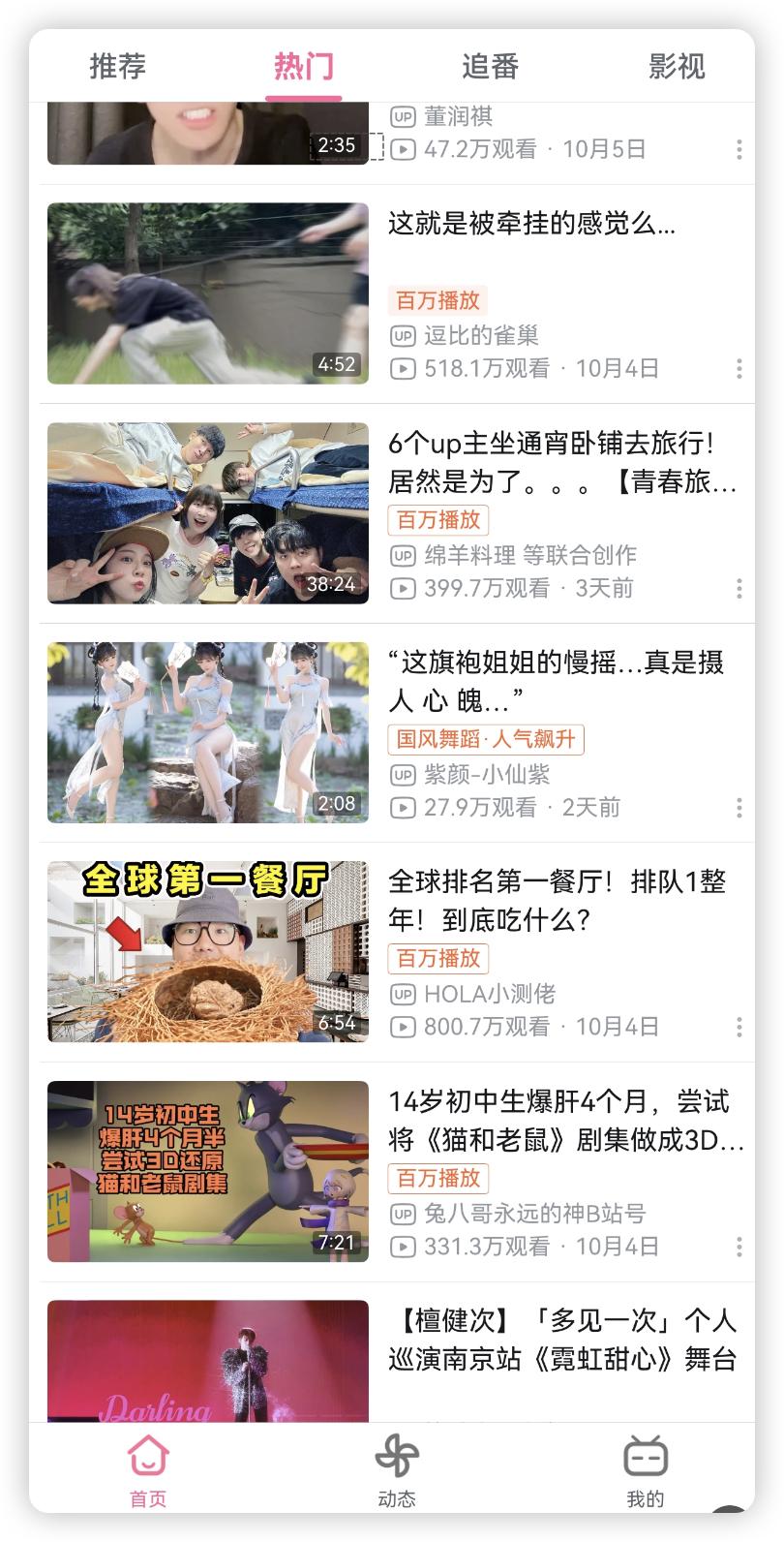 对于重度的 B 站用户,现阶段鸿蒙版可能会有些不太习惯。可以看到,鸿蒙版 B 站顶部只有四个栏目,底部只有三个栏目,十分简洁。好消息是没有”会员购“这样商城性质的栏目,坏消息是它无法选“分区”,也无法“上传视频”和“开直播“。(注:不排除有,但是隐藏太深我没找到的情况)