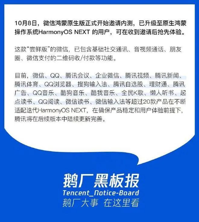 眼尖的小伙伴已经发现图中没有国民级应用微信的身影,这是因为该应用目前暂未在鸿蒙应用市场中上架,腾讯方面表示,现阶段是随机向部分用户推送内测邀请的方式。