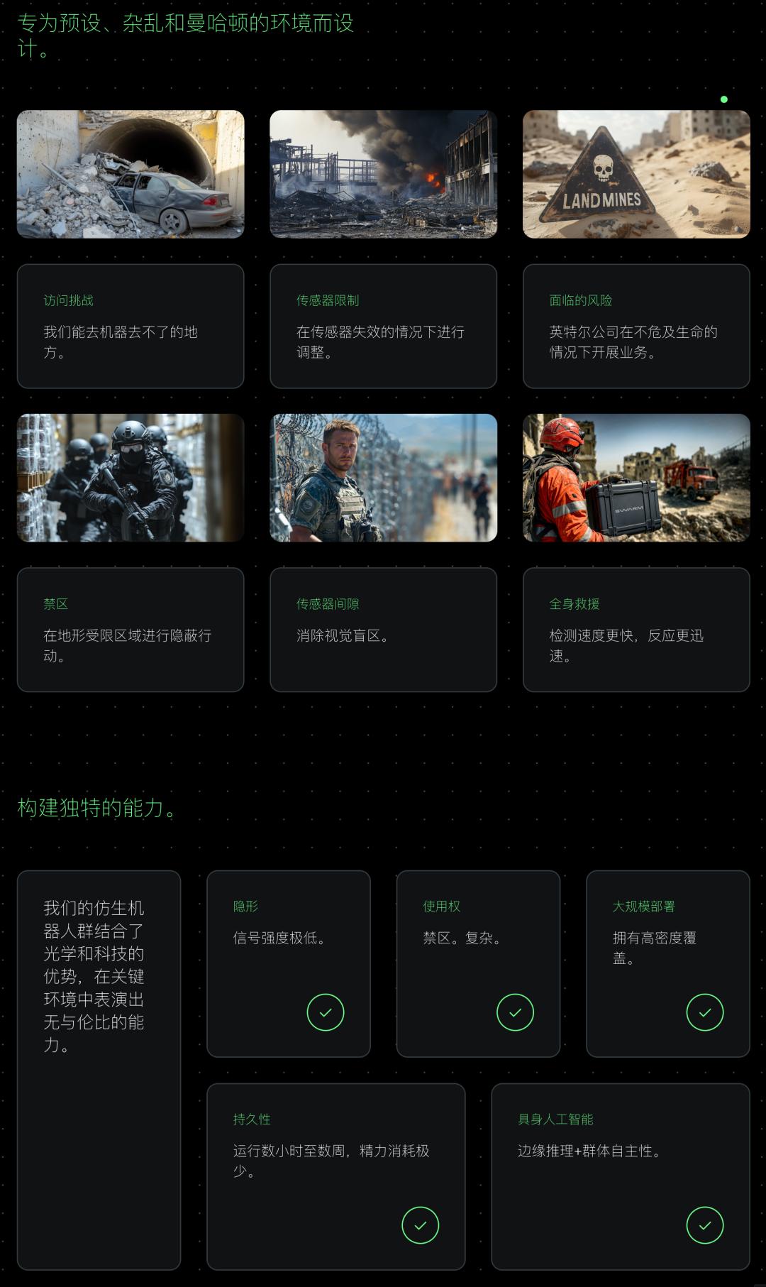 公司公开材料里写得很明确:他们的系统面向的是GPS-denied、Cluttered、Inaccessible的环境,也就是信号受限、地形复杂、普通机器人难以通行的地方。