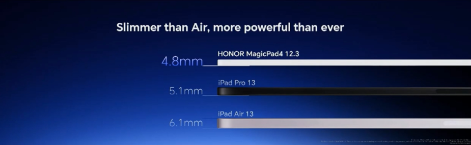 厚度4.8mm、屏幕边框3.9mm,让MagicPad 4成为了全球最薄的平板。