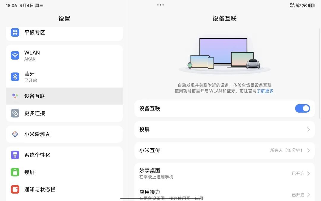澎湃OS 3在平板上的表现比2稳定很多,能直接控制米家生态,也能跟手机互联,实现网络共享和通知流转啥的。