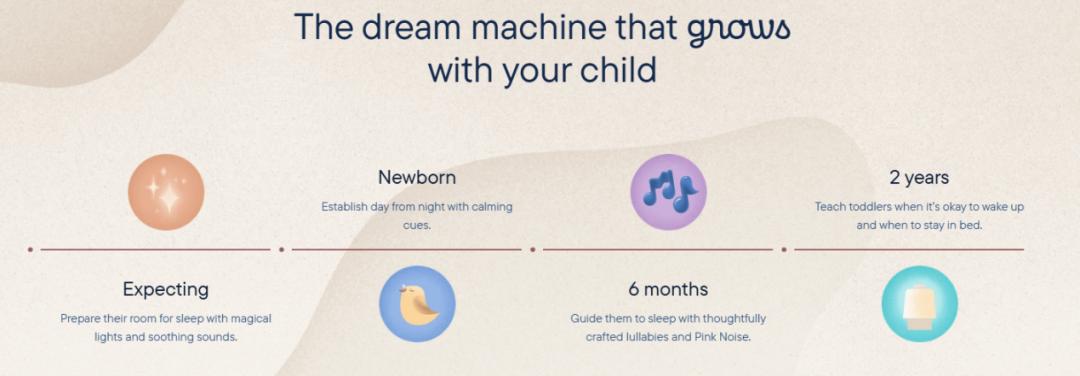 早期凭借婴儿助眠设备切入,后期产品覆盖全年龄段,Hatch 的核心产品线也分为Hatch Rest(现为 Hatch Baby,面向婴儿、儿童)和Hatch Restore(面向成人)。