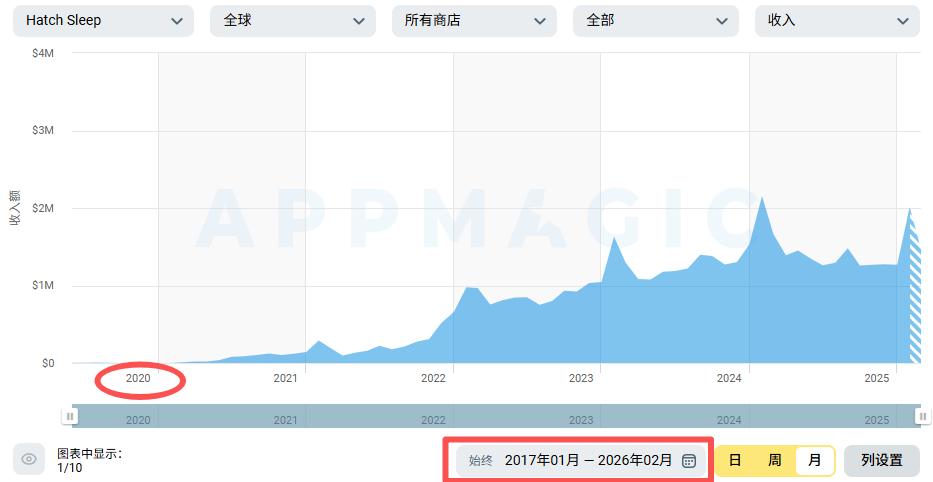 Hatch Sleep 近两年月流水稳定在 300 万美元左右|点点数据
