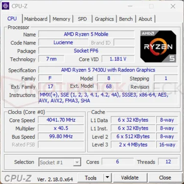测试机器很快在硬件检测工具中露出了马脚,代号信息显示为 Lucienne-U(Zen 2 架构),L3 缓存 2X4MB,Turbo 频率略高于 4.0GHz,与 7430U 的 Zen 3 架构、4.3GHz 最高频率以及 16MB L3 缓存完全不符。