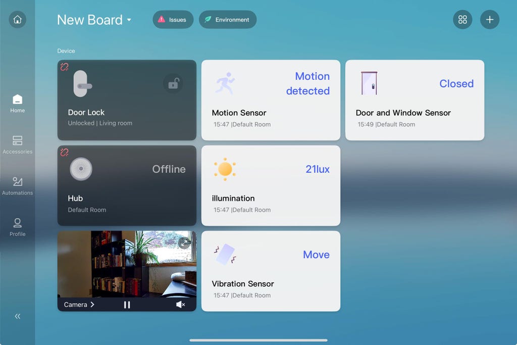 如果家中安装了安全摄像头或宠物摄像头,我会查看实时画面,以确保其正常工作(这通常意味着设备上的其他功能也都在正常运转)。对于漏水检测器或运动传感器等设备,进入主页查看设备状态是否在线并正常报告即可。对于智能恒温器,我会检查温度读数是否准确,以及能否从手机上调节温度。对于连接到如Apple Home等中央平台的设备,我会进入查看,确保所有设备磁贴都处于活动状态且正常工作。