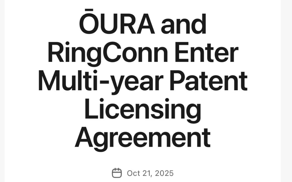2025年10月21日,RingConn发布公告,通过与Oura达成专利授权协议化解了被禁止海外售卖困境。根据协议,RingConn向Oura支付专利使用费,从而获得继续在美国市场销售的权利。