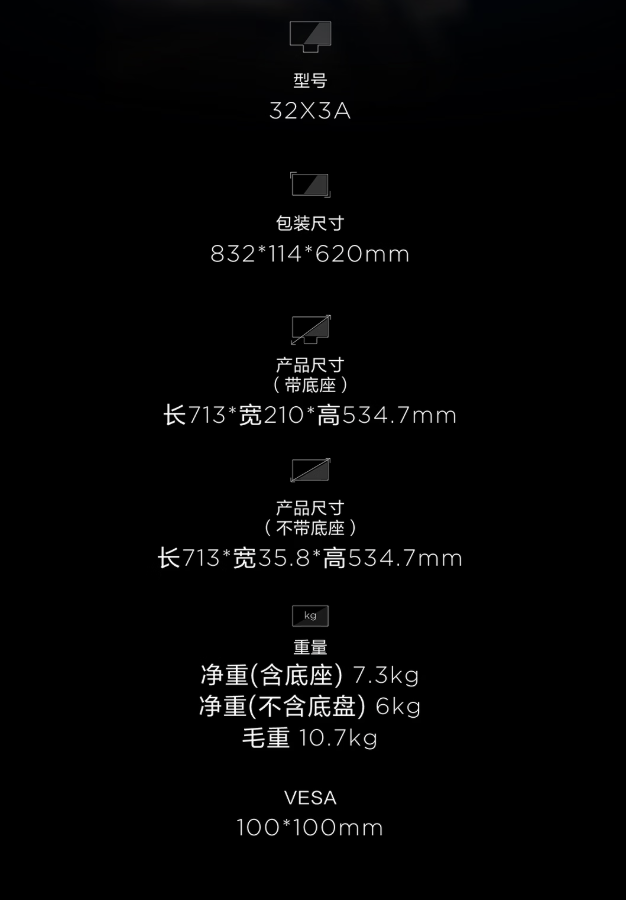 其他方面,该机内置环境光传感器,显示器背面提供 RGB 氛围灯,配有 B&O 深度定制音响。提供 2 个 HDMI 2.1、1 个 USB-C 90W、1 个 DP2.1、2 个 USB-A(KVM)接口。