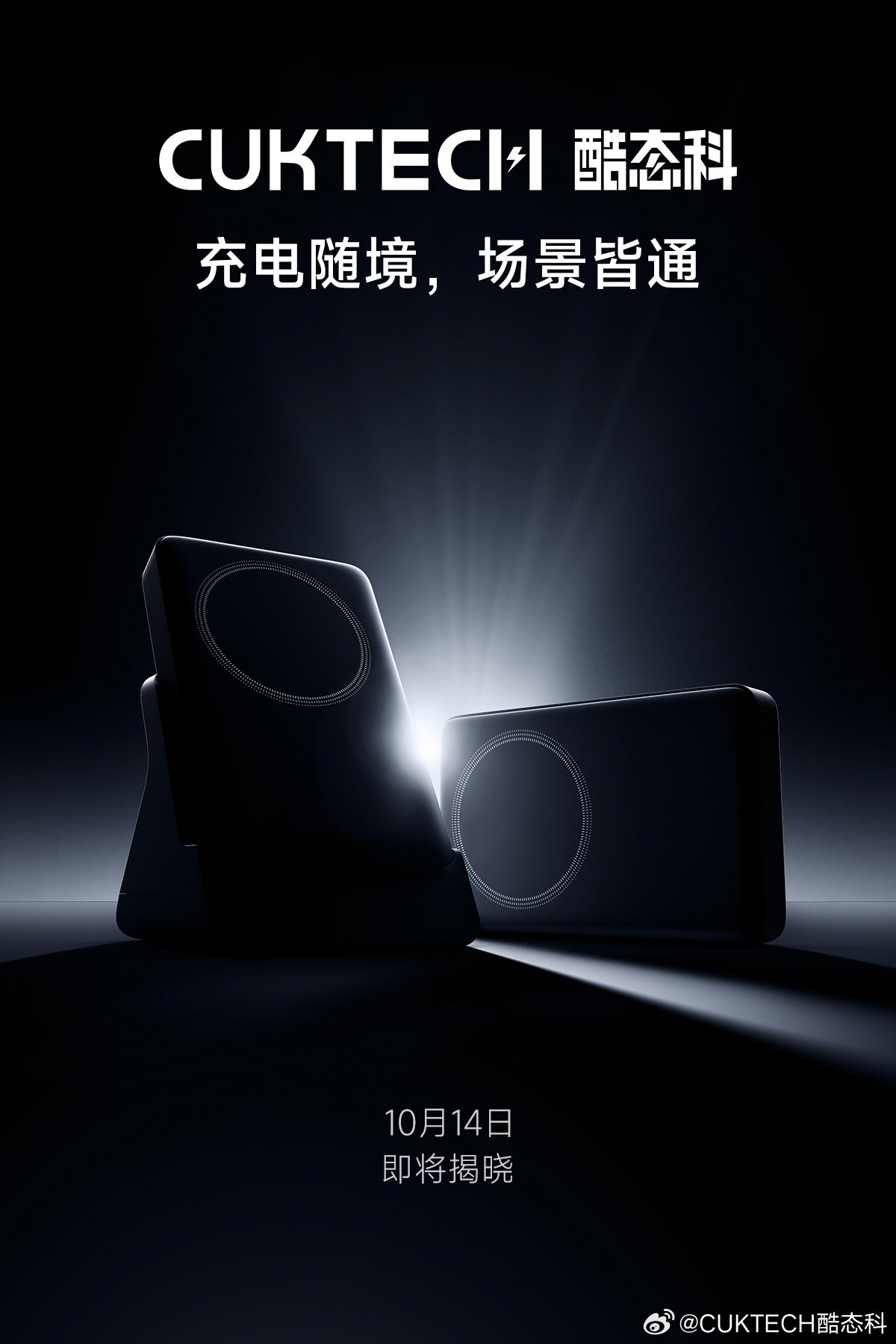 IT之家 10 月 10 日消息,酷态科今日宣布将于 10 月 14 日发布新品,从官方海报来看,预计为磁吸移动电源。