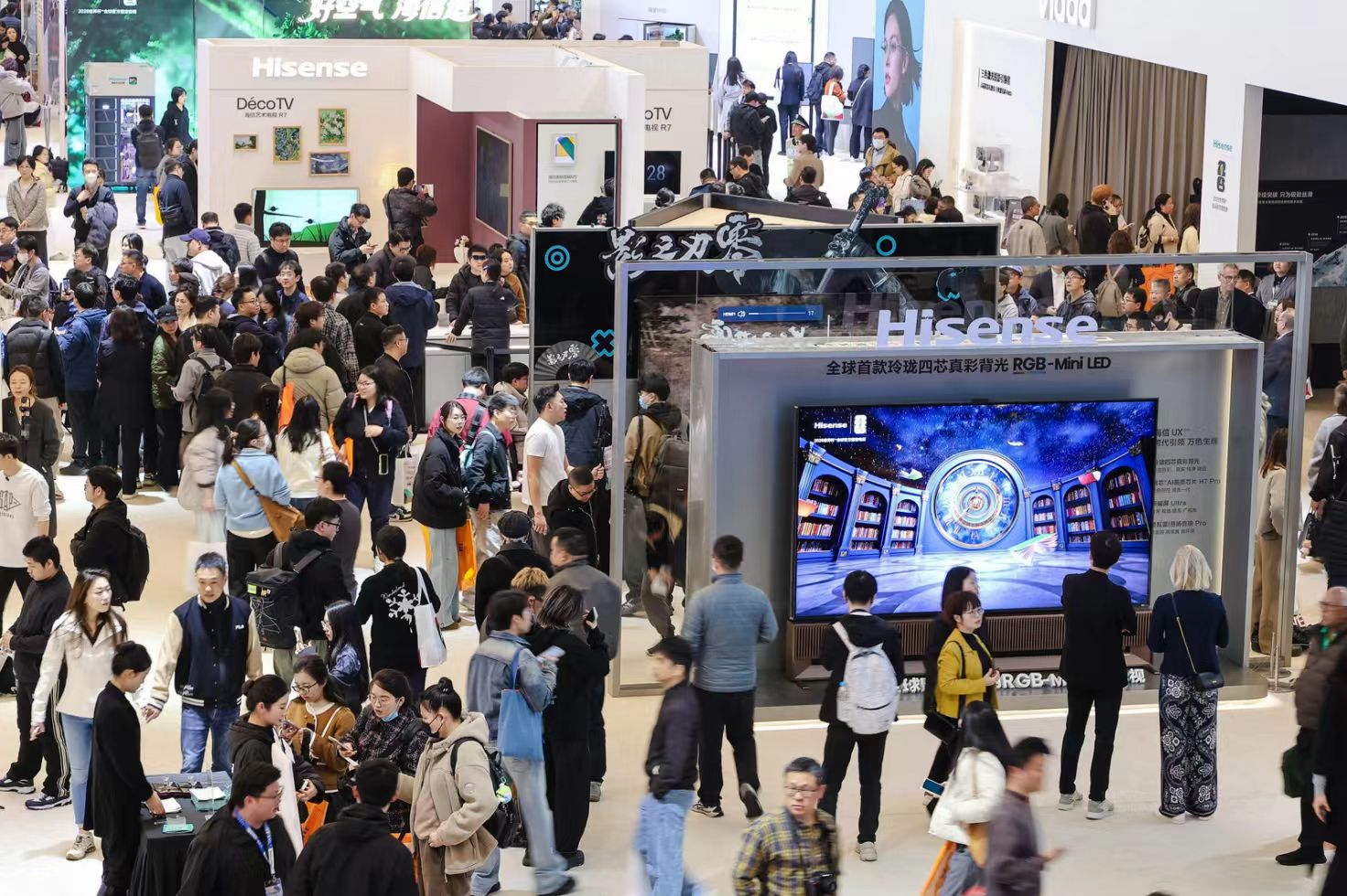 作为RGB-Mini LED电视鼻祖,海信带来了全球首款玲珑四芯RGB-Mini LED电视UX2026款,成为这届AWE电视赛道的明星产品。