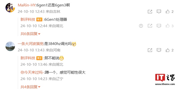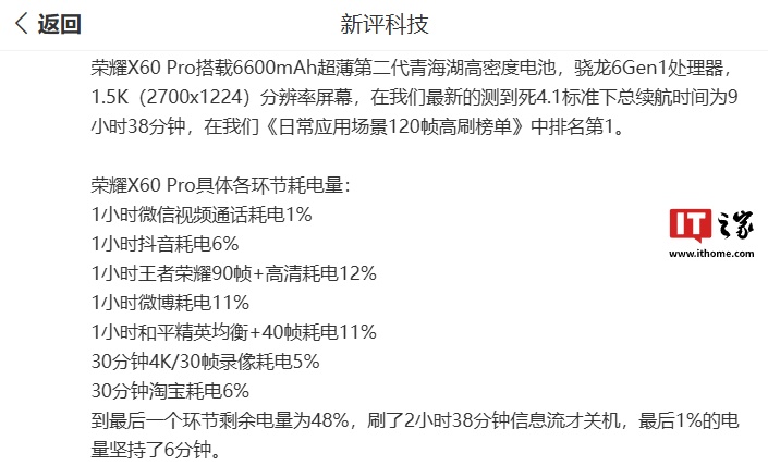 博主 @新评科技 今日发文透露了荣耀 X60 Pro 手机部分配置信息,新机将搭载骁龙 6 Gen1 处理器,配备 1.5K(2700×1224)分辨率屏幕。评论区中有网友询问确认新机处理器“6 Gen1 还是 6 Gen3”,博主明确回复“6 Gen1 处理器”。