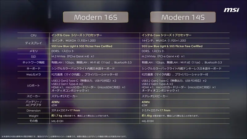 将要搭载英特尔新款入门级移动端处理器的产品为星爵 Modern 16S / 14S,其配备的处理器属于酷睿 7 序列。该机型拥有 1 个 DDR5 内存插槽和 1 个 M.2 PCIe Gen4×4 NVMe 盘位,支持 1GbE LAN 和 Wi-Fi 6 WLAN。