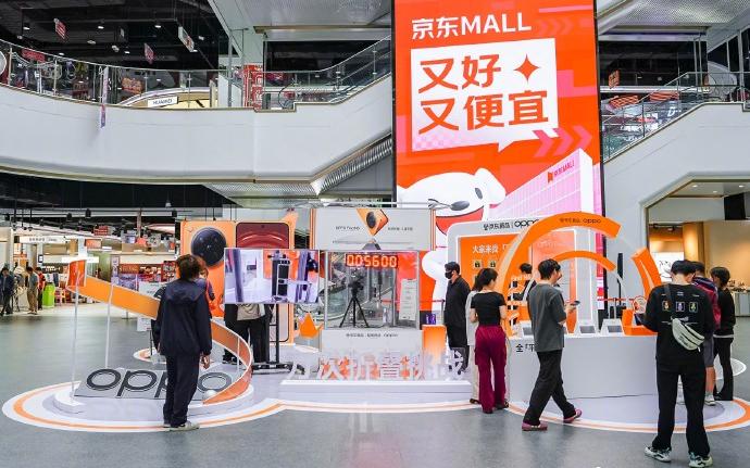京东这几年在一二线城市砸下了重金,搞出了很多面积巨大、极具赛博朋克感的京东MALL。对OPPO来说,这就是现成的顶级展示橱窗。