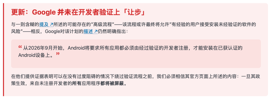 换句话说,开发者验证不会取消,但没验证的应用也能装,就是过程不可能那么丝滑。