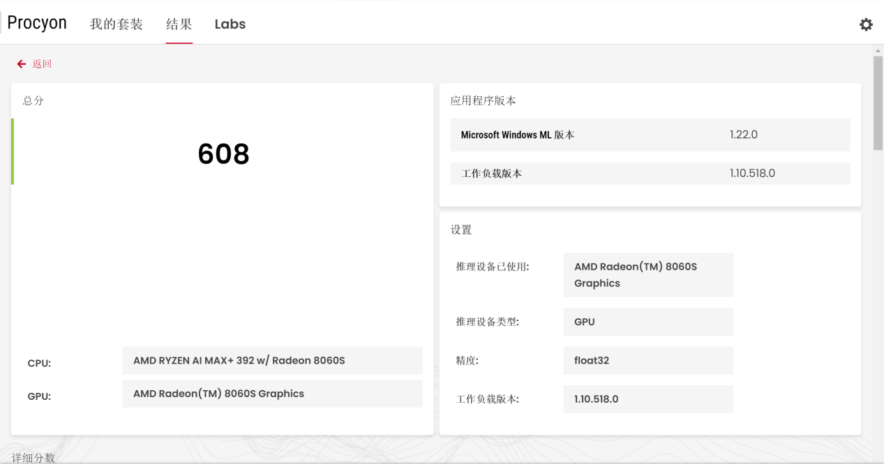 AMD 锐龙 AI Max+392 处理器还内置 50 TOPS XNDA2 NPU,在 UL Procyon 针对 Ryzen AI NPU integer 精度的跑分测试中,成绩为 1870 分。