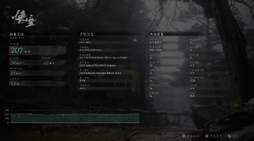 接着,再打开帧生成选项,使用华硕天选 Air 2026,此时游戏平均帧数来到 207 帧左右,这个帧数玩《黑神话:悟空》,无疑是非常畅爽的了。