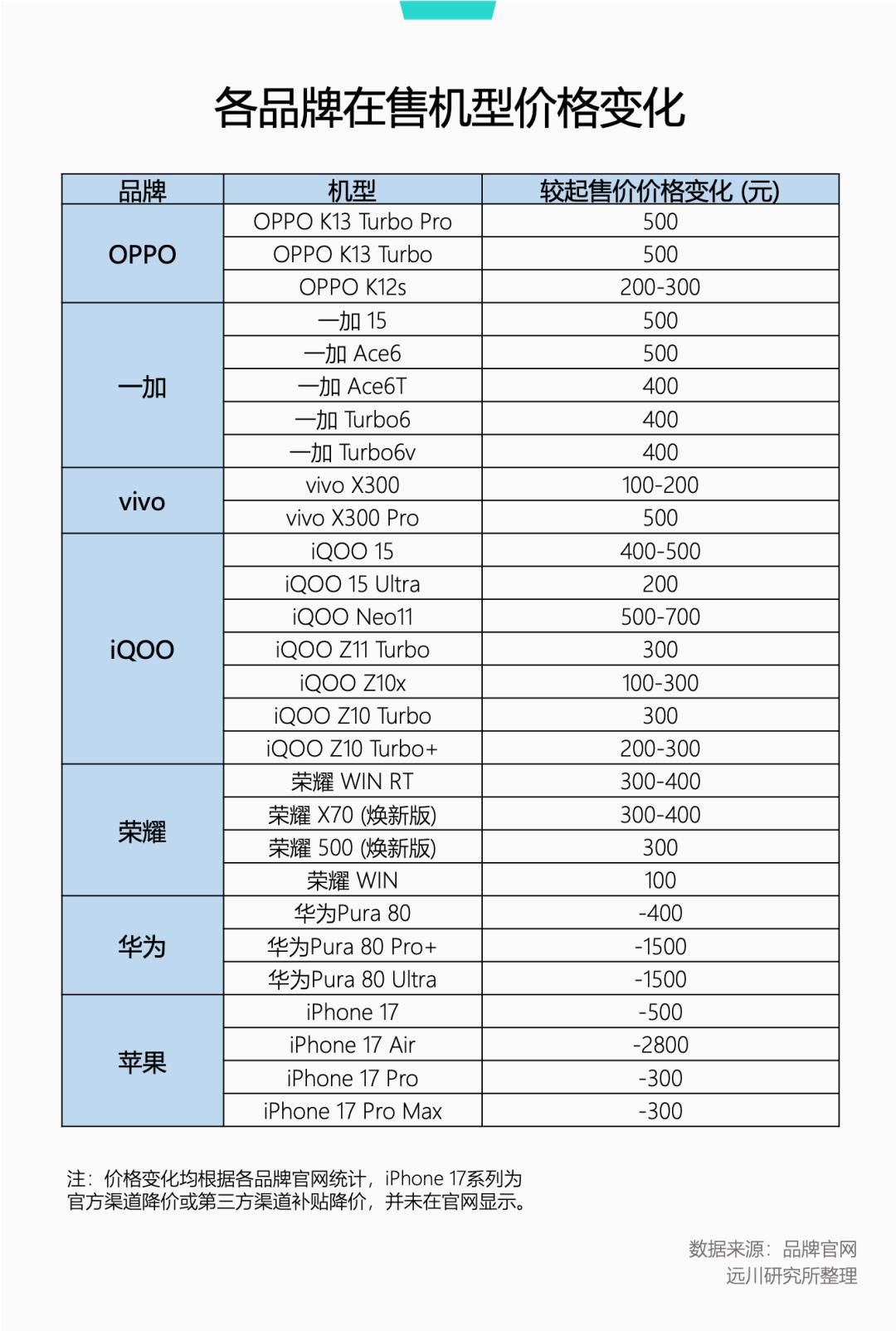 与之类似,vivo旗下IQOO涨价的7款机型中,有5款原起售价在1500元-2500元之间;荣耀除Magic V6外,还上涨了三款原价在3500元的机型。