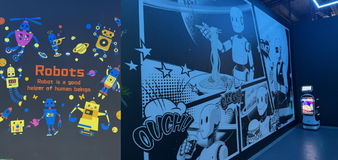 中午,牛马终于可以松一口气了,你可以来到机器人主题餐厅,欣赏不眠不休的机器人牛马为你表演。