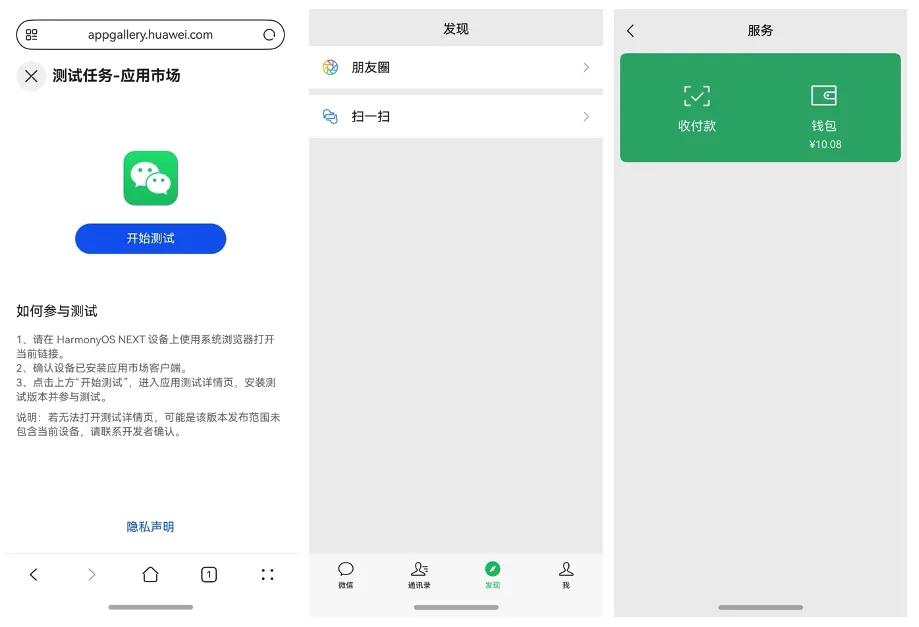 10月8日,HarmonyOS NEXT向Mate 60系列、Mate X5、MatePad Pro 13.2英寸的公测版用户推送了更新,在此版本到来后,将不再兼容Android应用。随后,腾讯也通过公众平台发布消息,鸿蒙原生版微信即刻上线内测版。