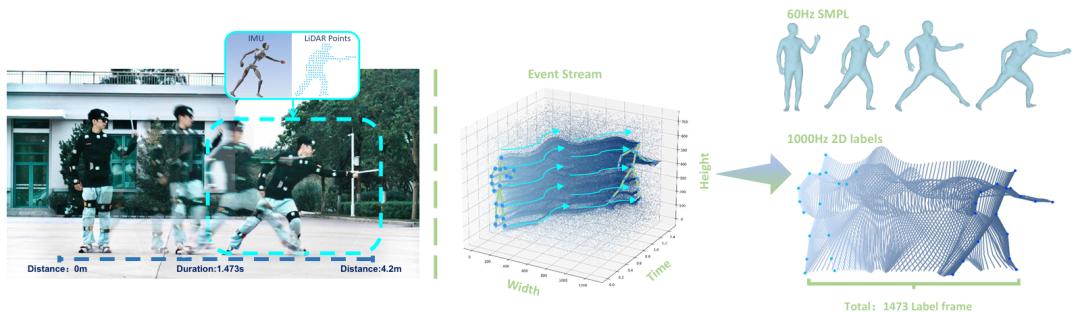 基于FlashCap系统,研究团队采集并开源了FlashMotion数据集。不仅多模态(囊括事件流、RGB、LiDAR点云和 IMU),更在数据维度上完成了真正的降维打击: