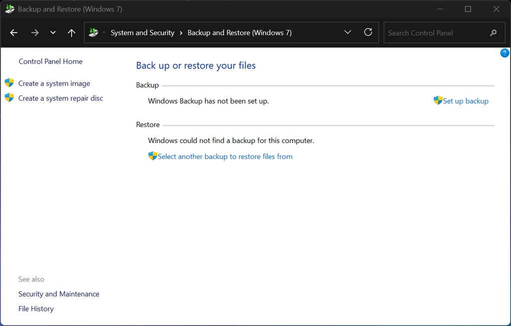 在Windows 11系统中,先把你的外部驱动器连接到电脑上。接着打开控制面板,然后依次导航到系统和安全 > 备份和还原(Windows 7),再点击设置备份。(别被“Windows 7”这几个字误导啦,这只是Windows早期版本留下来的“痕迹”,控制面板嘛,多少带点复古的韵味。)在这里,你可以选择外部驱动器,然后让Windows系统自动选择要备份的文件;当然,你也可以自行挑选要备份的文件、库,还能创建一个完整的系统镜像。