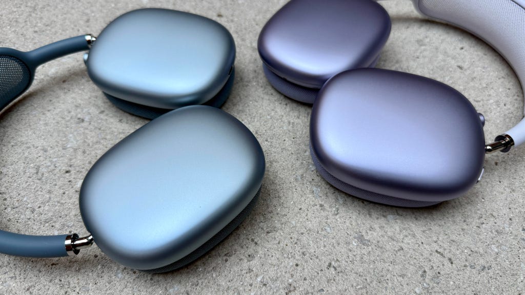 AirPods Max 2与AirPods Max USB-C版颜色相同,图中左侧为蓝色款,David Carnoy/CNET供图