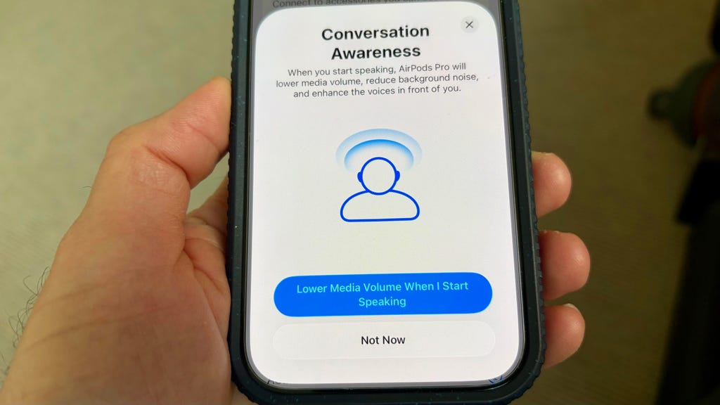 “对话感知”功能在AirPods Max 2上表现出色,David Carnoy/CNET供图