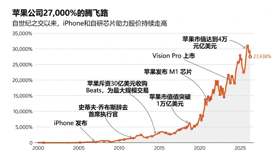 苹果的崛起不仅塑造了科技行业,也深刻影响了大众文化,它先后将台式电脑与智能手机推向了主流市场,又让移动应用走进千家万户,并向世人展示了硬件与软件深度整合所能达到的高度。