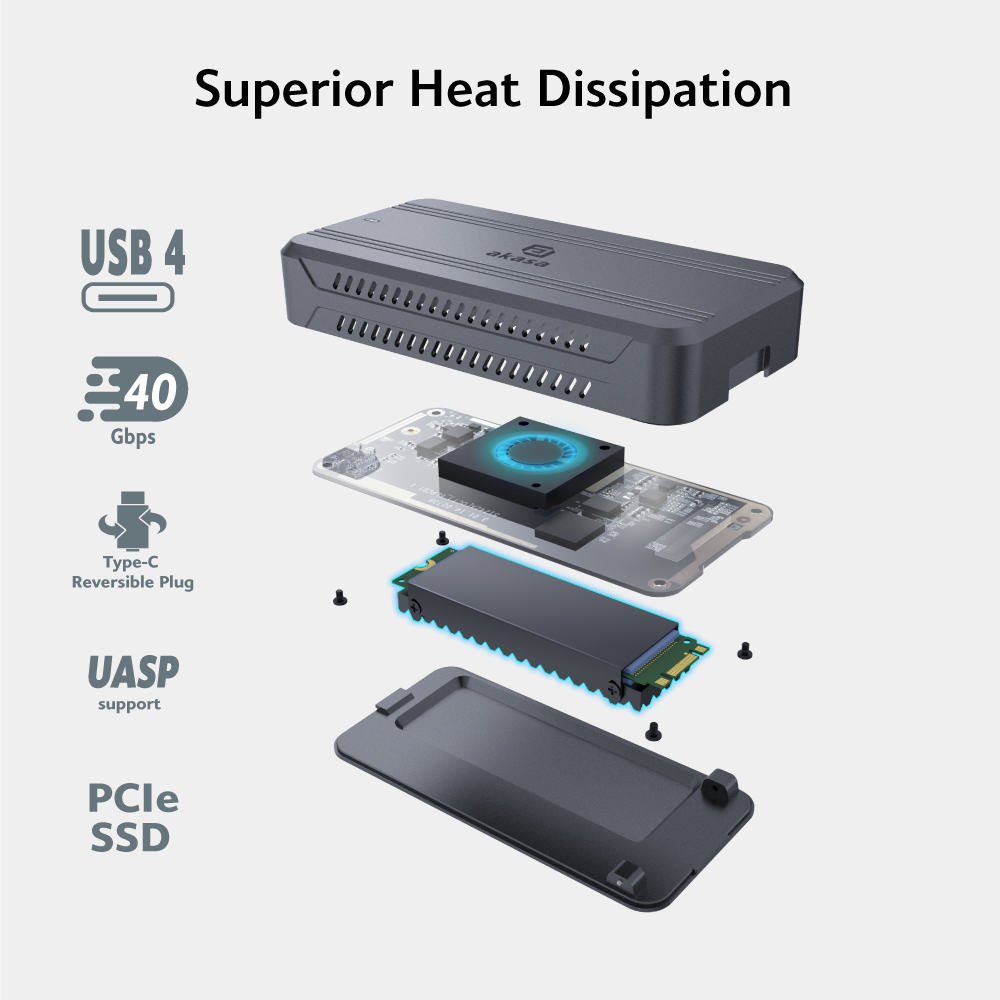 IT之家 10 月 12 日消息,据外媒 Tom's Hardware 当地时间本月 7 日报道,厂商 Akasa 爱克生推出了一款型号名为 AK-ENU4M2-01 的主动散热 USB4 40Gbps 移动硬盘盒。