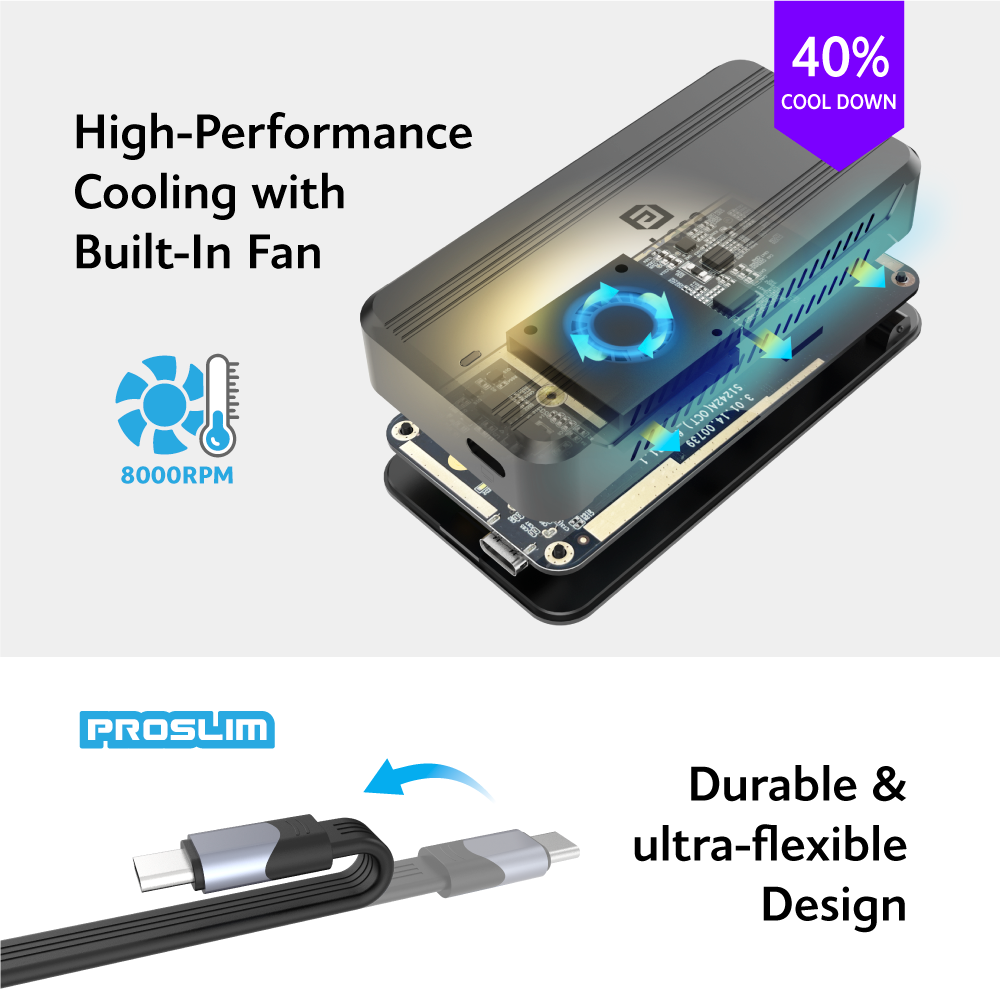 Akasa AK-ENU4M2-01 移动固态硬盘盒配备 ProSlim 易弯折线缆,支持 Windows 8.X 及以上、macOS、Linux 操作系统。