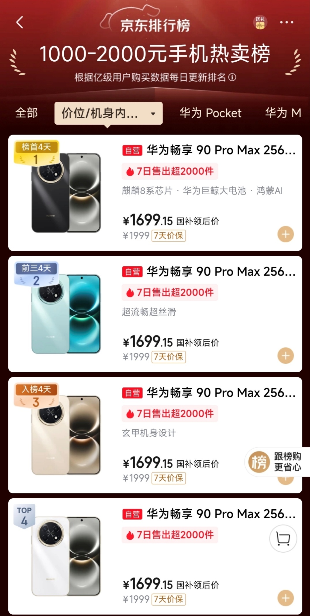 截至发稿,华为畅享 90 Pro Max 上架后在京东 1000-2000 元手机热卖榜霸榜前 4 名,在京东手机热卖总榜上位列第四,在天猫手机热销总榜中同样位列第四。消费者用真金白银的投票,表达对新机的认可。