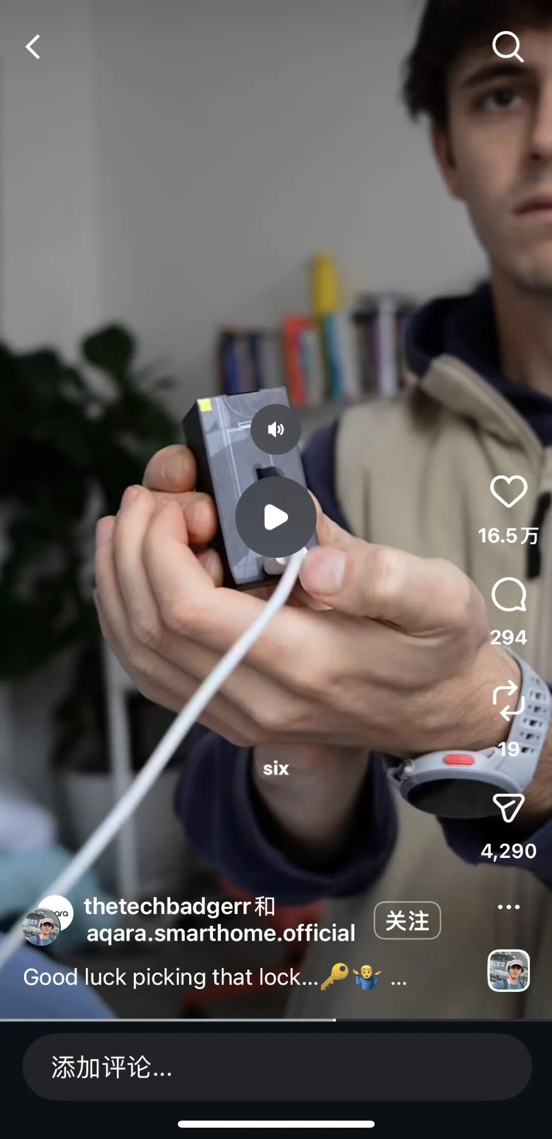 如Instagram上,Aqara绿米选择与科技产品博主@thetechbadgerr共创视频,通过日常生活中的产品实际使用,向用户传达产品的核心理念及优势,获得了379万观看量、16.5万点赞。