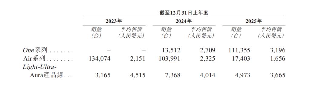 2024年至2025年,One系列产品平均售价分别为2709元/台和3196元/台,销量由13512台增至111355台,实现量价双升。