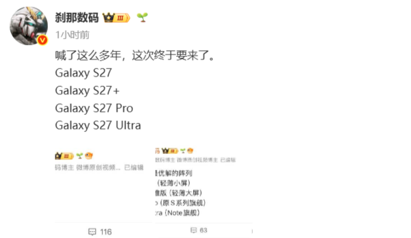 值得一提的是,三星S27系列的四款机型的阵容布局处于早期规划阶段,主要体现了三星在长期产品战略上的方向性调整。关于三星S27 Pro的具体参数规格,以及它与Plus和Ultra机型之间的配置差异,目前尚未有详细数据流出,相关产品规划仍需等待后续供应链信息的进一步验证。