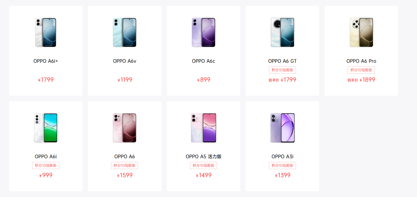 IT之家注意到,目前 OPPO 已经推出多款 A6 家族手机,包括 A6、A6 GT、A6i+、A6 Pro 等等,售价在几百元到一千多元不等。