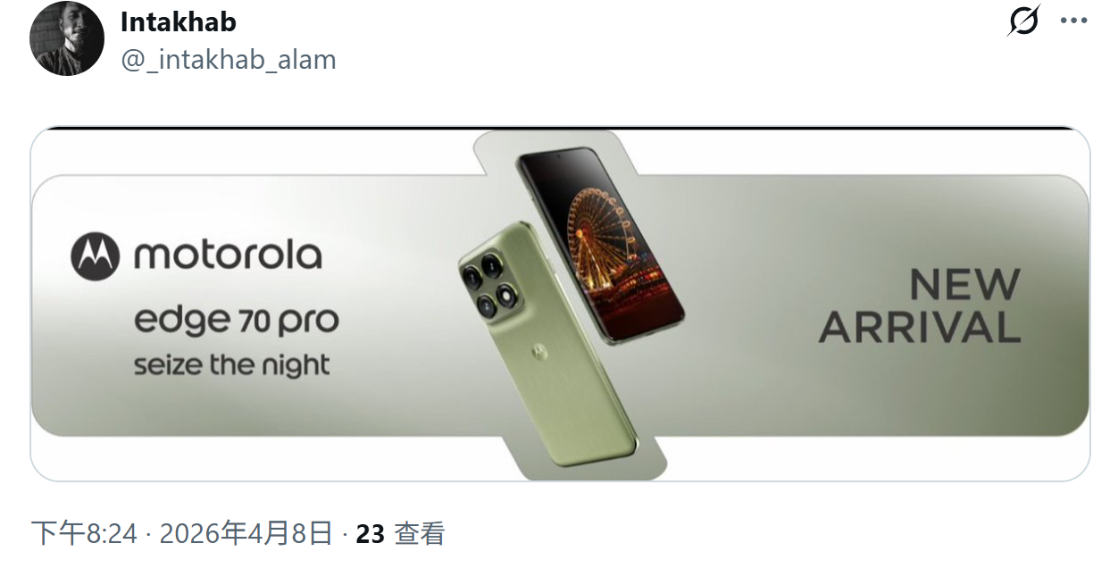 IT之家 4 月 9 日消息,消息源 @_intakhab_alam 今天(4 月 8 日)在 X 平台发布推文,分享了一组宣传物料,展示摩托罗拉 Edge 70 Pro 手机。