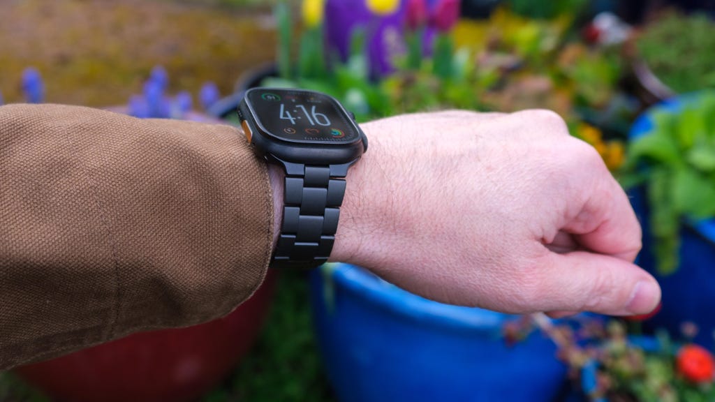 去年,我终于告别了长期佩戴的铝制Apple Watch,入手了黑色钛金属Ultra 3,并搭配了织物陶土色高山回环表带。Ultra并未配备金属链式表带,但由于Apple Watch表带大多兼容各型号,你可以选择购买Apple的不锈钢链式表带,售价为349美元——几乎相当于手表价格的一半。