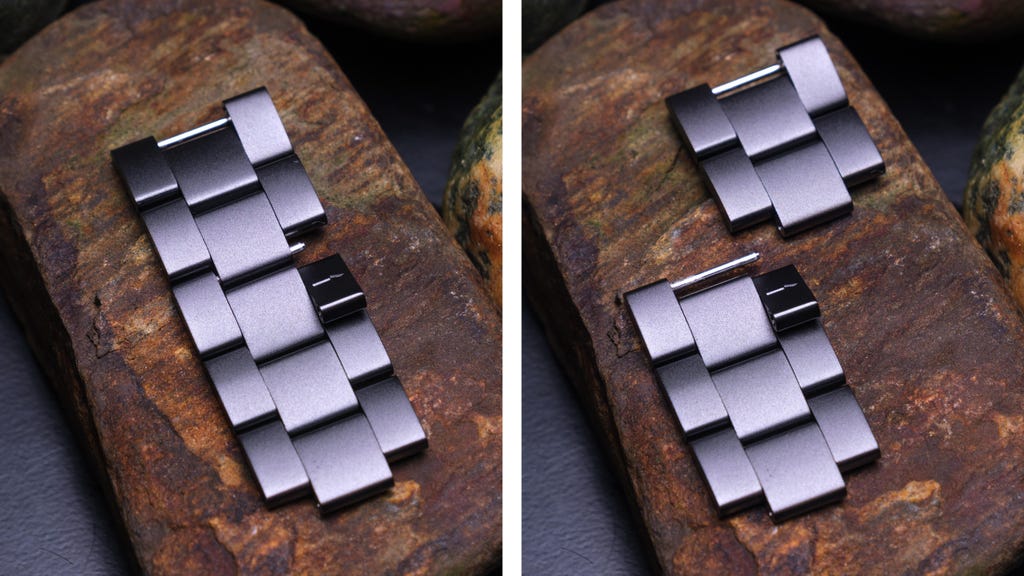 我的手腕较细,只有17厘米(6.7英寸),因此表带一开始显得过大。这正是Withit表带的亮点所在,因为你无需一套珠宝工具和放大镜来调节链节长度,就像调节普通手表上的金属表带那样繁琐。