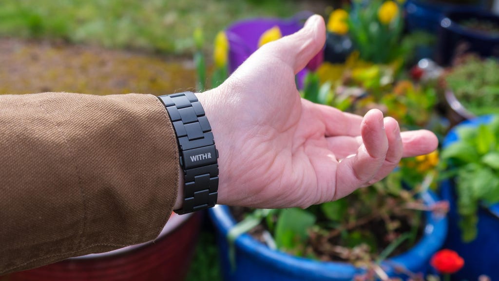 我手腕上的Withit钛金属Apple Watch表带。Jeff Carlson/CNET