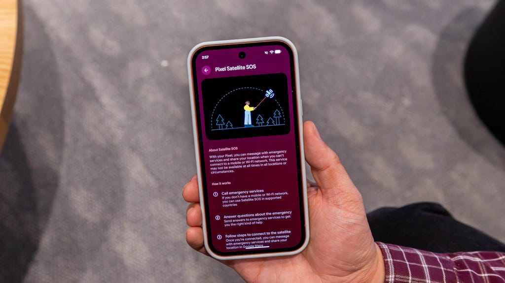 谷歌Pixel 10A与Pixel 9A的少数差异之一是支持卫星SOS功能。Joseph Maldonado/CNET