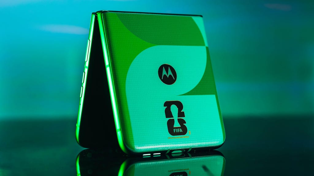 Razr国际足联世界杯特别版的背面采用别具一格的双色设计。Joseph Maldonado/CNET