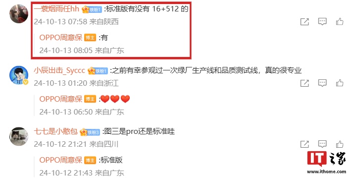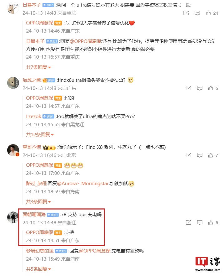 IT之家注意到,周意保今日还在其他微博的评论区中透露:Find X8 手机支持 PPS 充电,同时标准版提供 16+512GB 版本。