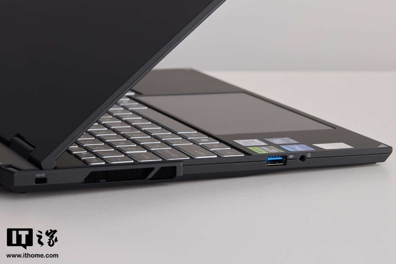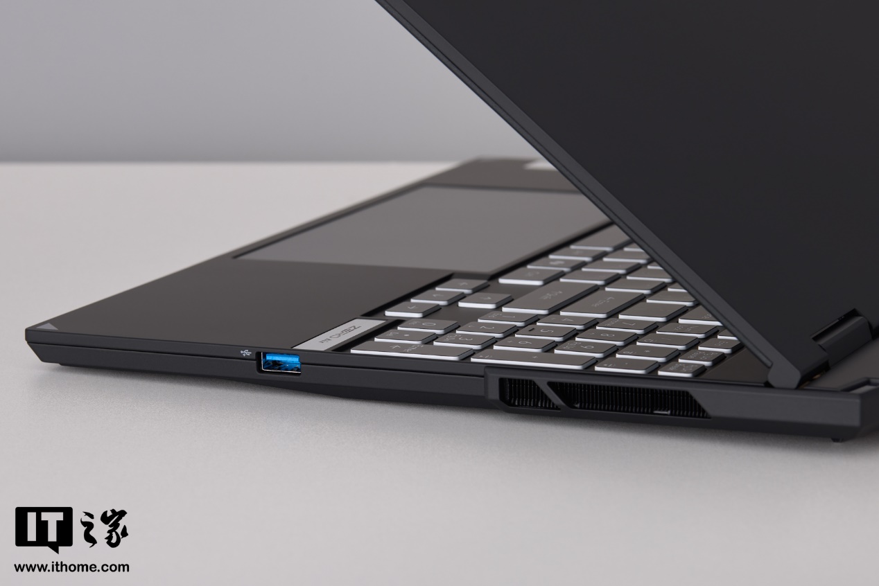 雷神 ZERO Air 15 首发提供幻夜黑、月影白双色可选,IT之家拿到的是幻夜黑配色,航空级镁合金机身加上准分子 UV 漆表面工艺,黑得深邃纯粹,手感亲肤温和。