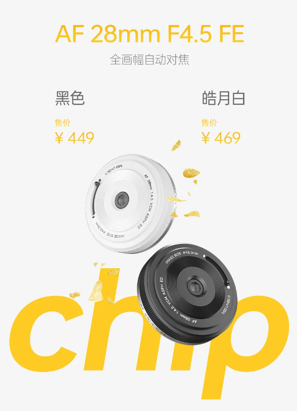 该镜头目前提供索尼 FE 卡口可选,其中黑色版本定价为 449 元,白色版本为 469 元,未来还将推出尼康 Z 卡口版本。