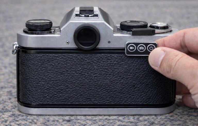 这款后背使用时需要像胶片相机一样过片,让快门机构进入待机状态,然后通过蓝牙遥控器触发拍摄,实现快门同步并完成曝光。支持所有 135 胶片相机,包括 Nikonos 等水下相机。并且整个系统完全放置在相机内部,无需任何外接组件。